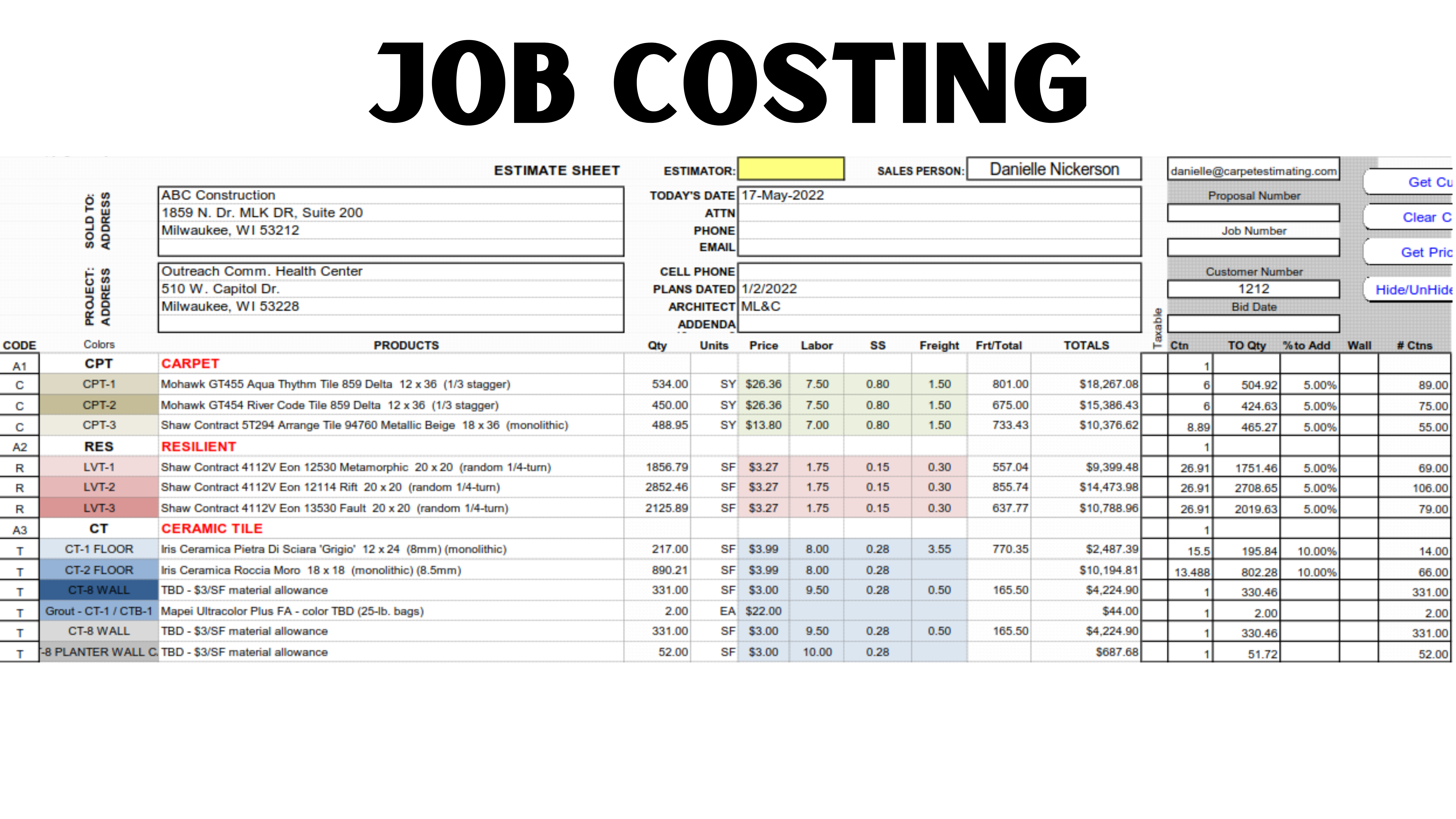 Seamlessly calculate costs and job quantity needs in a real-time responsive excel spreadsheet. Manage your bids from proposals to purchase orders and much more. Take the errors and guessing out of the equation and have confidence in your bids.